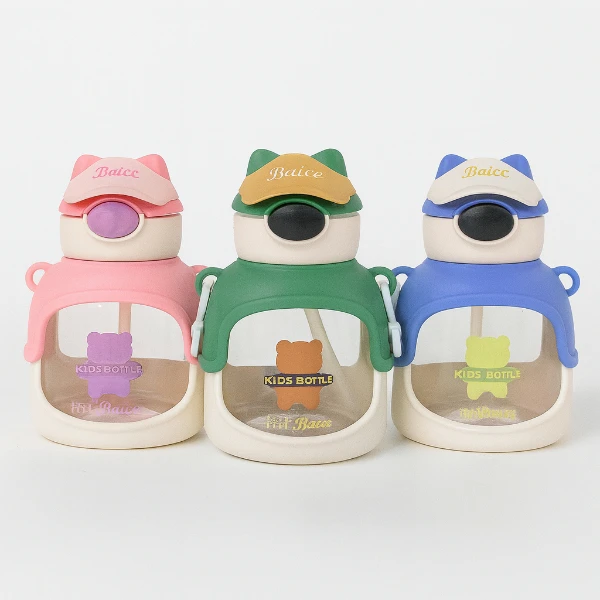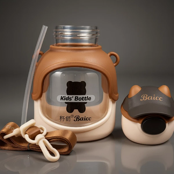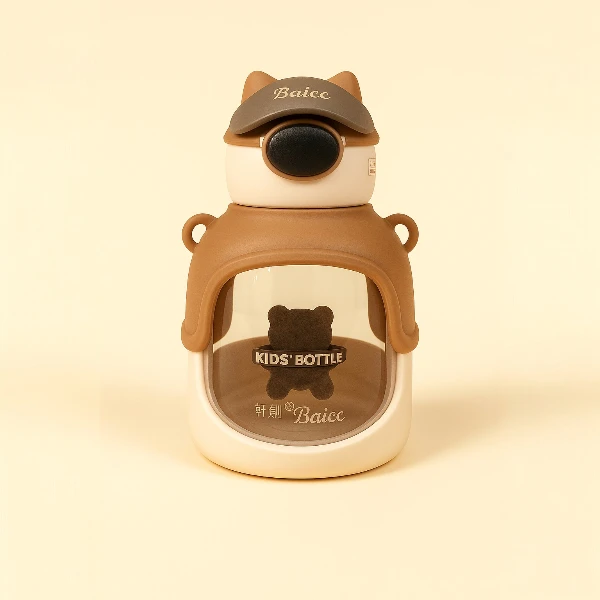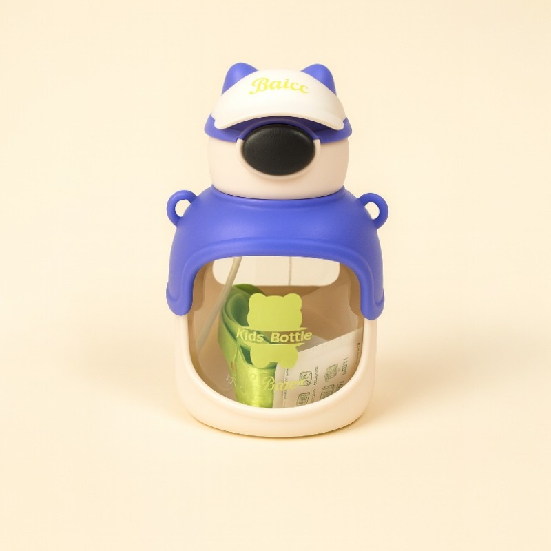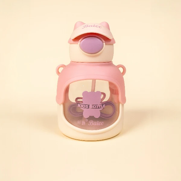 The Baicc Cute Kitty Kids Water Bottle is specially crafted to make hydration fun for children. Designed with an eye-catching kitty character shape, it features a charming pink and cream color combination that kids instantly love. The transparent body allows easy viewing of the water level, while the inner 3D kitty straw attachment adds a playful touch.
