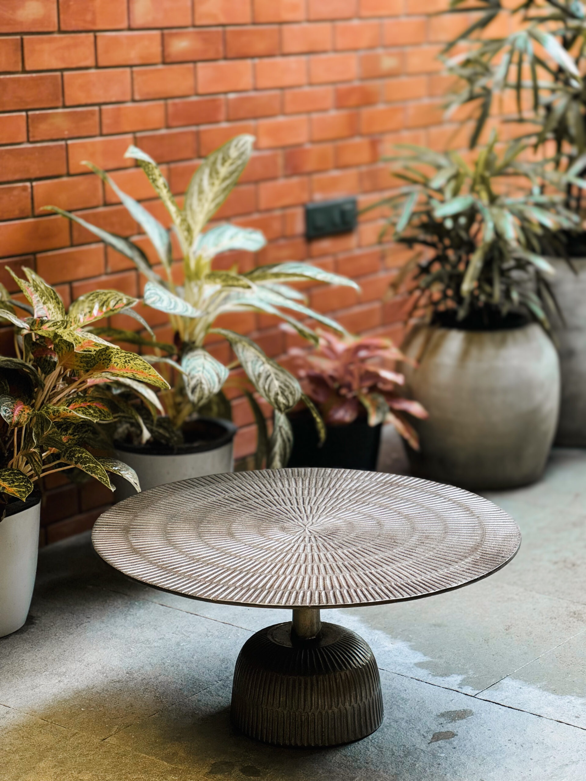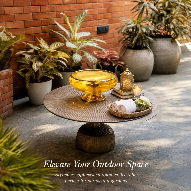 Elevate your outdoor living space with this statement round coffee table, designed to blend modern craftsmanship with timeless appeal. Featuring a textured tabletop and a sturdy pedestal base, this piece offers both visual interest and lasting durability. Ideal for patios, balconies, or garden seating areas, it serves as a stylish centerpiece for relaxed gatherings and everyday outdoor moments.