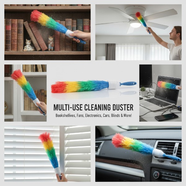 Ideal for cleaning furniture, shelves, electronics, fans, and car interiors — keeping your home bright, clean, and dust-free with ease.