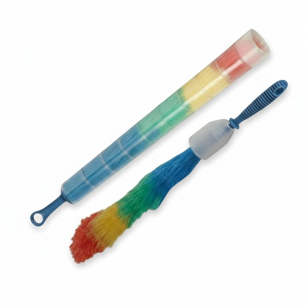 Multi-color duster made with soft synthetic bristles, ideal for cleaning dust from furniture, shelves, fans, and electronics. Lightweight and easy to handle for quick daily cleaning.