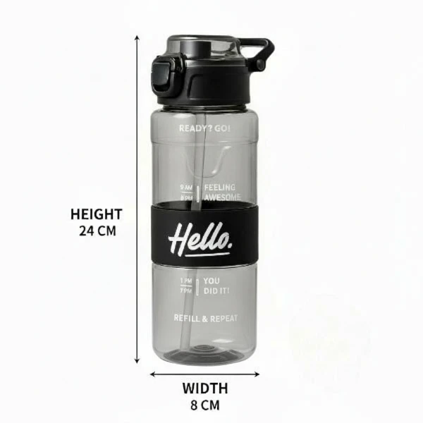 Stay hydrated in style with this premium motivational water bottle designed for daily use. Made from high-quality, BPA-free plastic, this bottle is safe, durable, and lightweight. It features a built-in straw for easy sipping and a secure flip-top lid to prevent leaks.