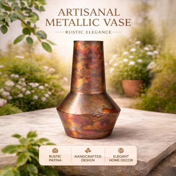 This Iron Planter is a striking blend of raw craftsmanship and artistic finish, designed to elevate both indoor and outdoor décor. Made from durable iron, the planter features a unique multitone patina with rich hues of bronze, copper, rust, and subtle golden undertones, giving each piece a one-of-a-kind, artisanal character.