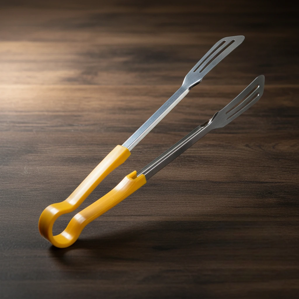 Premium stainless steel kitchen tong with slotted design and anti-slip handle for safe and easy flipping, frying, and serving.