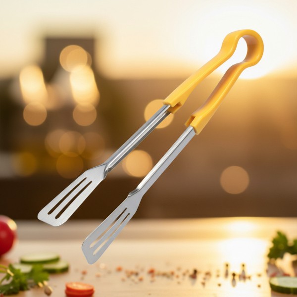 SS Kitchen Tong With Yellow Handle