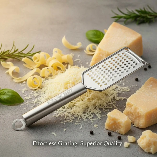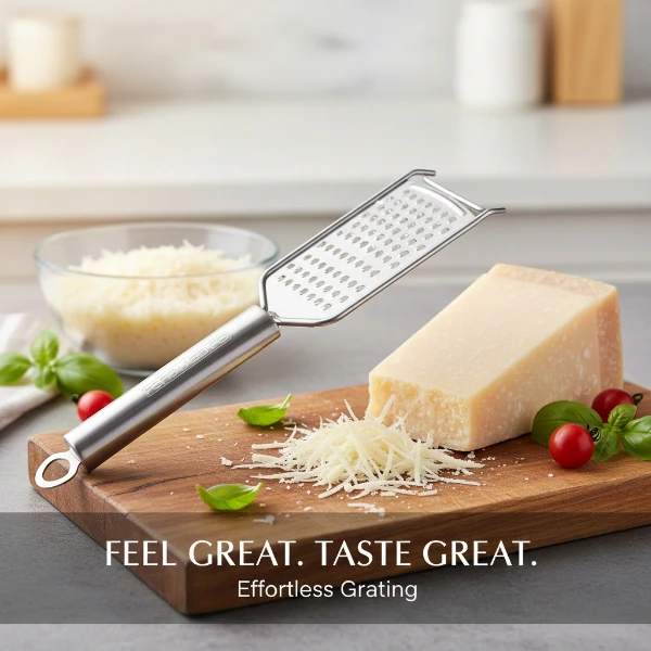 Classy Touch Stainless Steel Grater is a heavy-duty kitchen tool designed for fast and effortless grating. Made with premium rust-free stainless steel, it features ultra-sharp blades that grate vegetables, cheese, chocolate, ginger, garlic, coconut and more within seconds. The ergonomic stainless-steel handle provides a firm grip and comfortable use. Its sleek design and hanging loop make storage easy and space-saving. Ideal for homes, hotels, and restaurants, this grater ensures safe, smooth, and efficient food preparation for daily cooking.