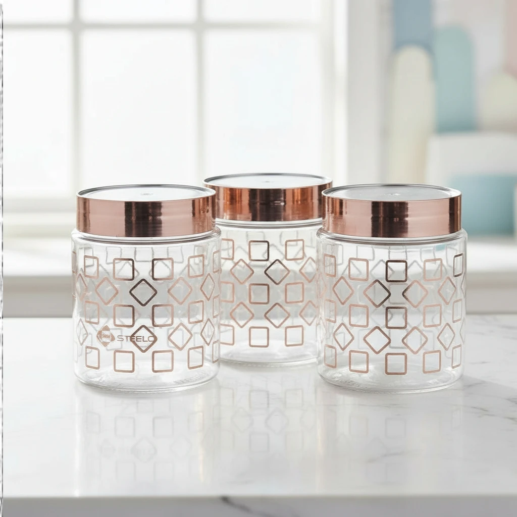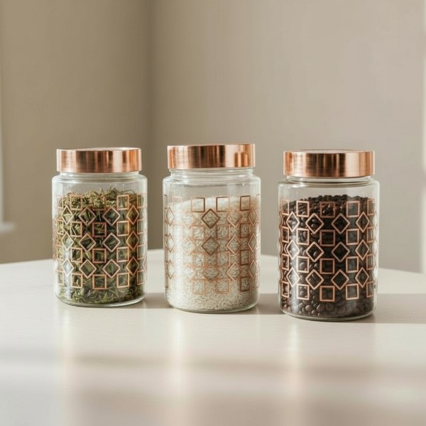 Stylish and practical storage containers designed to keep your kitchen neat and organized. made from high-quality, BPA-free material with an airtight lid to lock in freshness and prevent moisture. Perfect for storing snacks, pulses, sugar, coffee, or dry fruits. The elegant printed design adds a modern touch to your kitchen shelves.